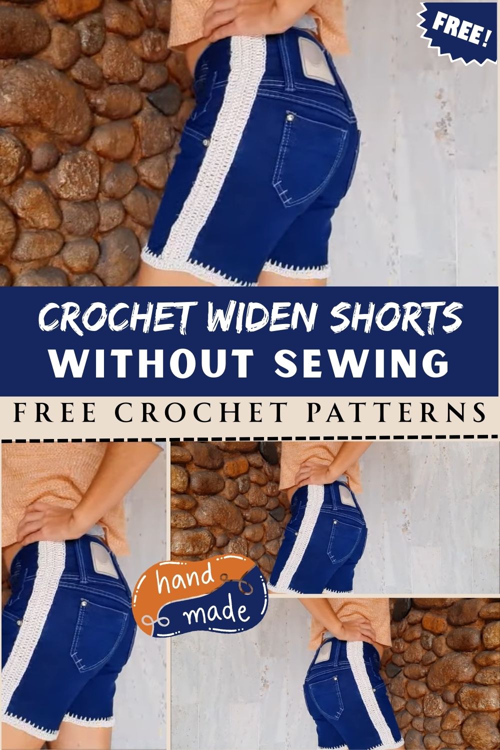 This smart crochet-widen shorts idea gives more comfort without a machine. Perfect for no-sew upcycle, improving fit, adding side panels, summer styling, beach outfits, and turning tight shorts into breathable DIY denim shorts with crochet flair.